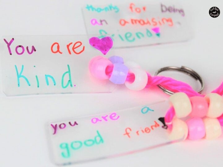 Make your own shrinky dink keychains - a perfect gift for kids to give their friends.