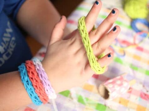 Make rainbow coloured friendship bracelets from yarn to wear and share.