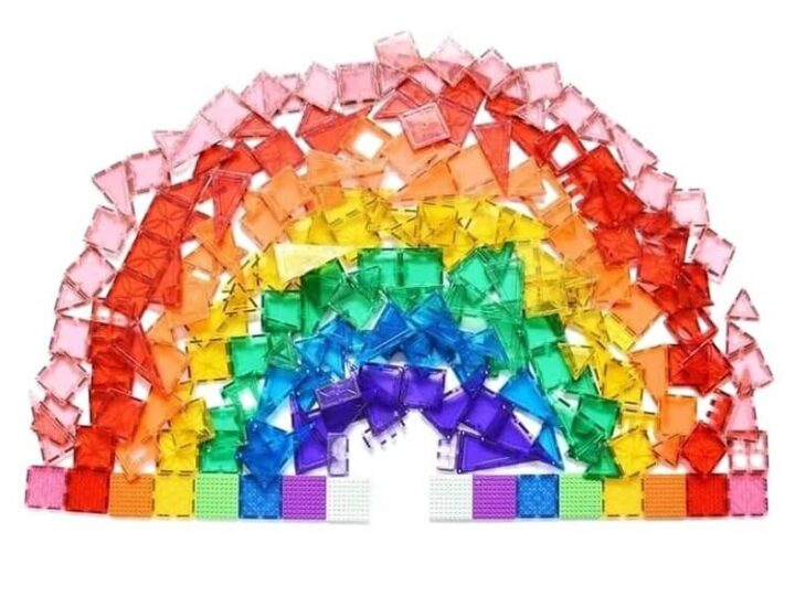 - Build with rainbow magnetic tiles