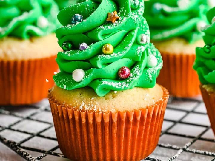 These cute Christmas tree cupcakes will look adorable on your party food table!