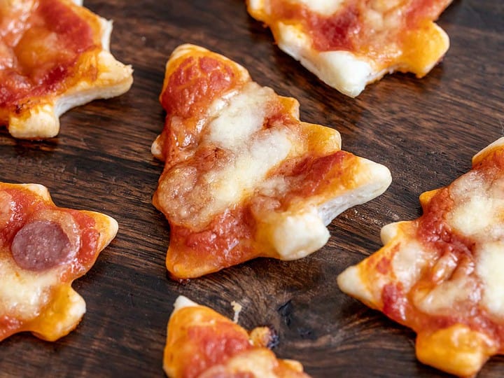 Pizza but make it bite-size and festive! Cute Christmas party finger food.