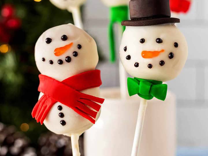 Kids love cake pops and these snowman cake pops are perfect for Christmas parties!