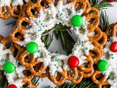 Christmas Chocolate Pretzel Wreaths