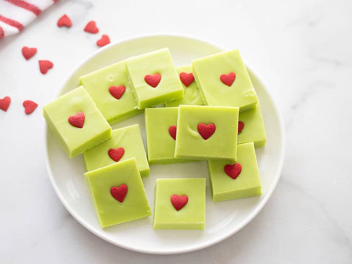 For fans of The Grinch, this Grinch fudge is a cute and bold addition to your party treats or dessert platter.