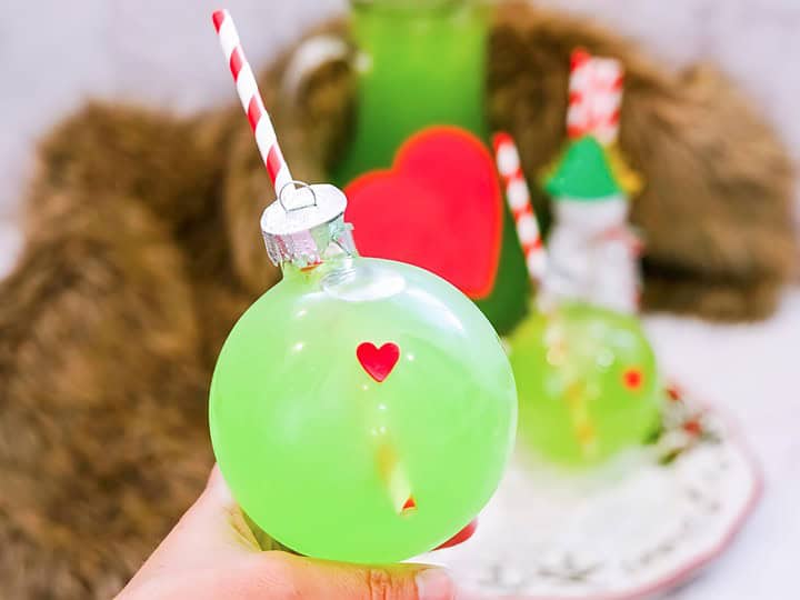 Add some extra fun to your Christmas celebrations with this delicious green Grinch Punch served in Christmas ornaments... or in a glass!