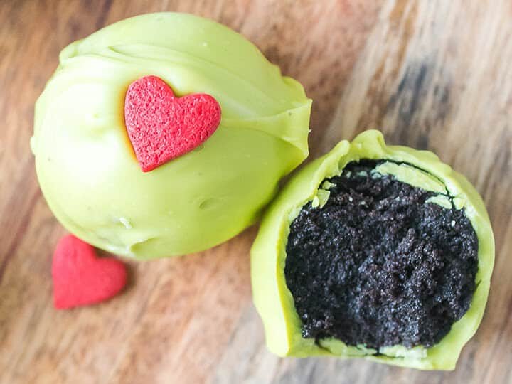 These easy Grinch Oreo truffles are a no-fuss treat with a green chocolate coating to make that Oreo filling extra delicious!