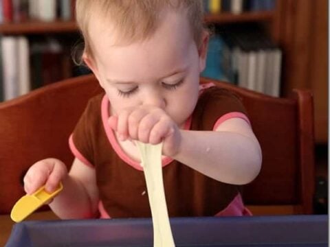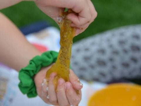 Slime is a great sensory activity for kids of all ages. The slippery, stretchy texture will encourage them to stretch, squish, pour and squelch to their heart’s content!