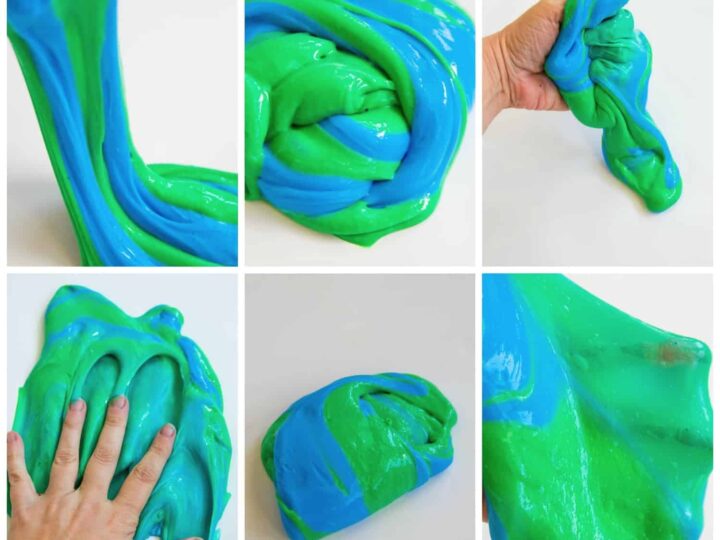 It’s easy to make this striped slime. Make it with your favorite colors or go with blue and green for earth day.