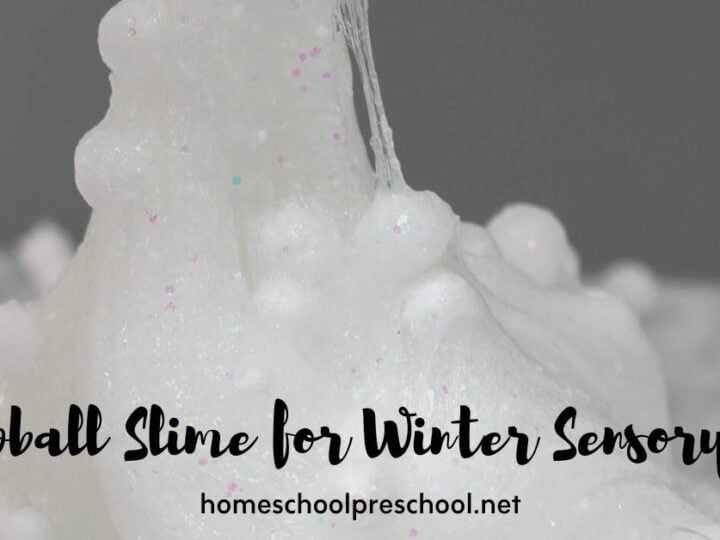 Your kids will love making this simple glittery snowball slime recipe this winter. It's a great activity to add to your winter sensory activities.