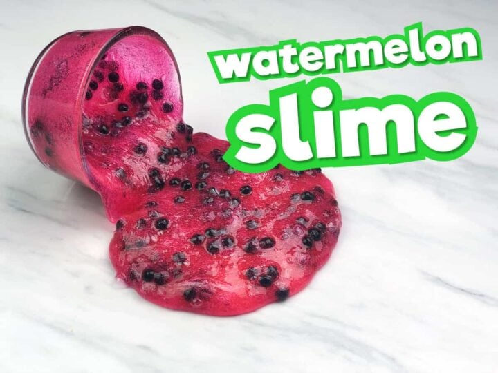 This no-borax, 4 ingredient watermelon slime is the perfect slime recipe to make during summer! Kids love it and easy to make.