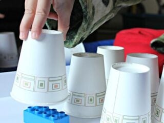 If doing this activity with a toddler, Duplo is a better option as it is safe for younger children.