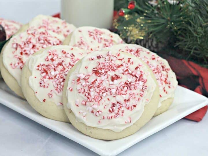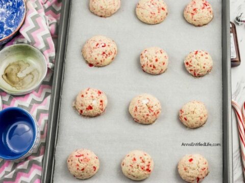 These Candy cane Amish sugar cookies are crispy on the edges and soft in the middle. Crushed candy canes are the perfect holiday topping for these delicate peppermint sugar cookies.