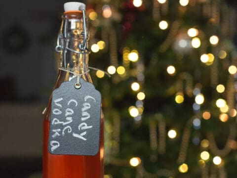 This DIY Candy Cane Vodka makes a fabulous Christmas gift and it's ready in less than an hour! Perfect for sipping or to spike a hot chocolate or coffee!