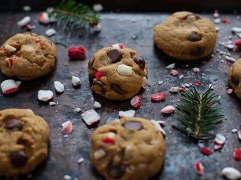 Delicious treats for the holidays! These easy peppermint dark chocolate chip cookies are made with whole-wheat flour and are perfectly festive for a holiday cookie swap!
