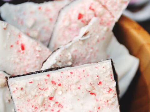 Dairy Free Peppermint Bark is one of the easiest desserts of the season! Just 5 simple ingredients, and a few minutes from start to finish!