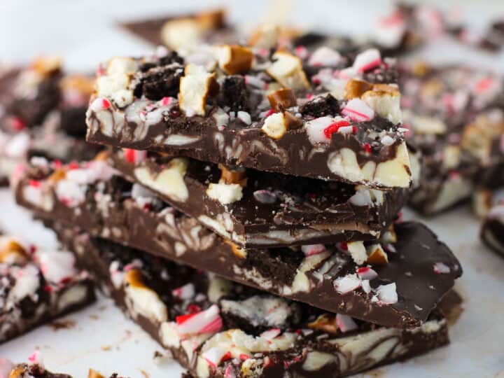 This Oreo peppermint bark is the BEST mix of sweet and salty! So easy and makes a great holiday food gift.