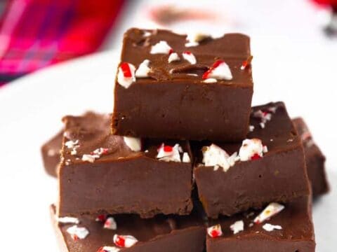 This vegan peppermint fudge is so delicious and easy to make! Just 3 ingredients and topped with crushed candy canes for a delicious and festive flavor!