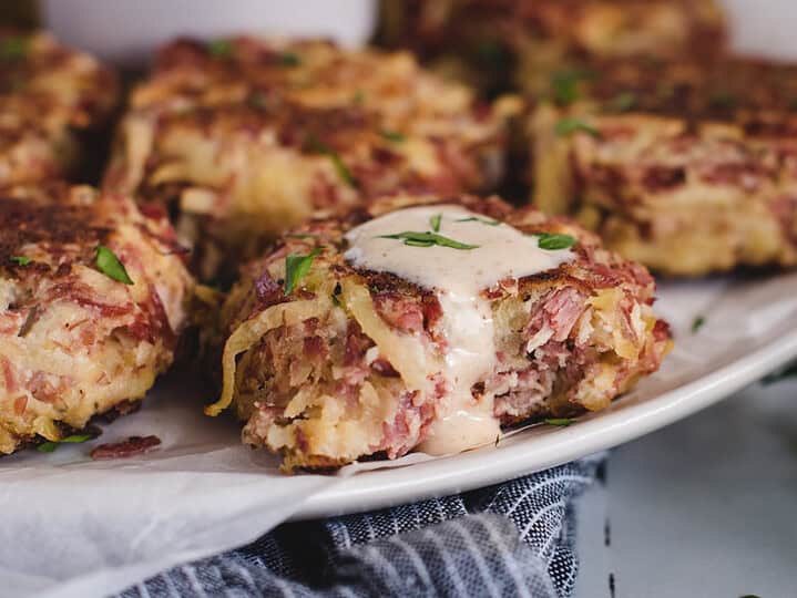 Use up that leftover corned beef in these tasty corned beef fritters. With grated potato and a creamy mustard sauce, they’re so satisfying and absolutely delicious!