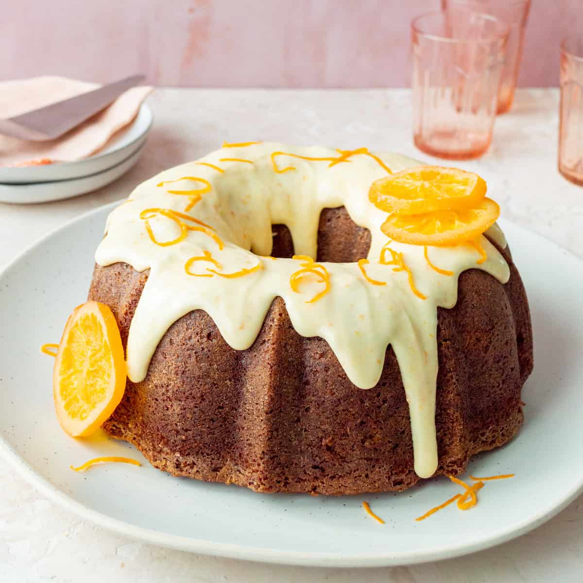 Carrot Cake Pound Cake with Orange Cream Cheese Glaze