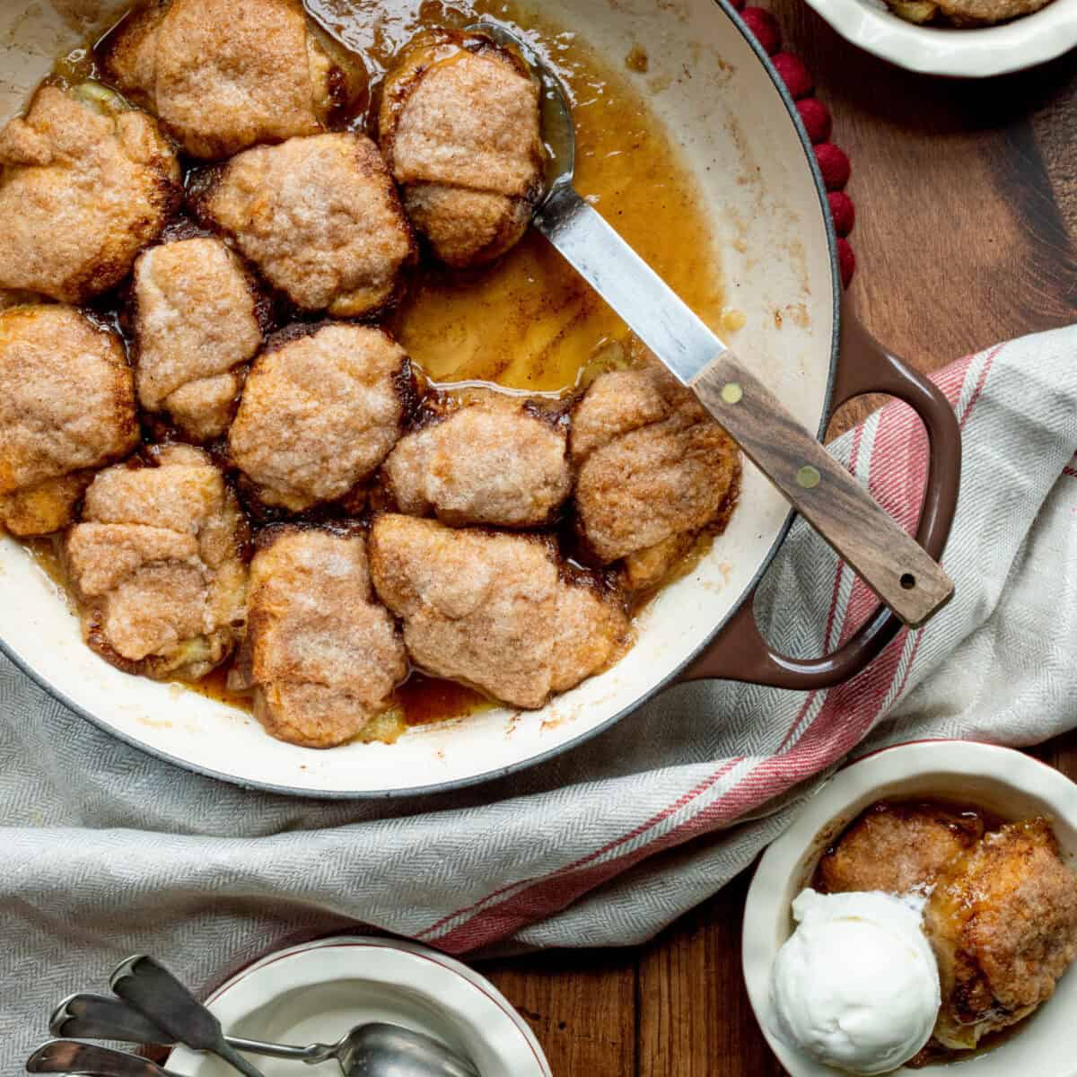 This Apple Dumplings recipe is the perfect way to welcome fall and celebrate apple season. Tart, fresh apples are wrapped in flaky, cinnamon-sugar crusted crescent roll dough and baked with a secret ingredient—Sprite! It’s surprisingly easy and absolutely delicious.