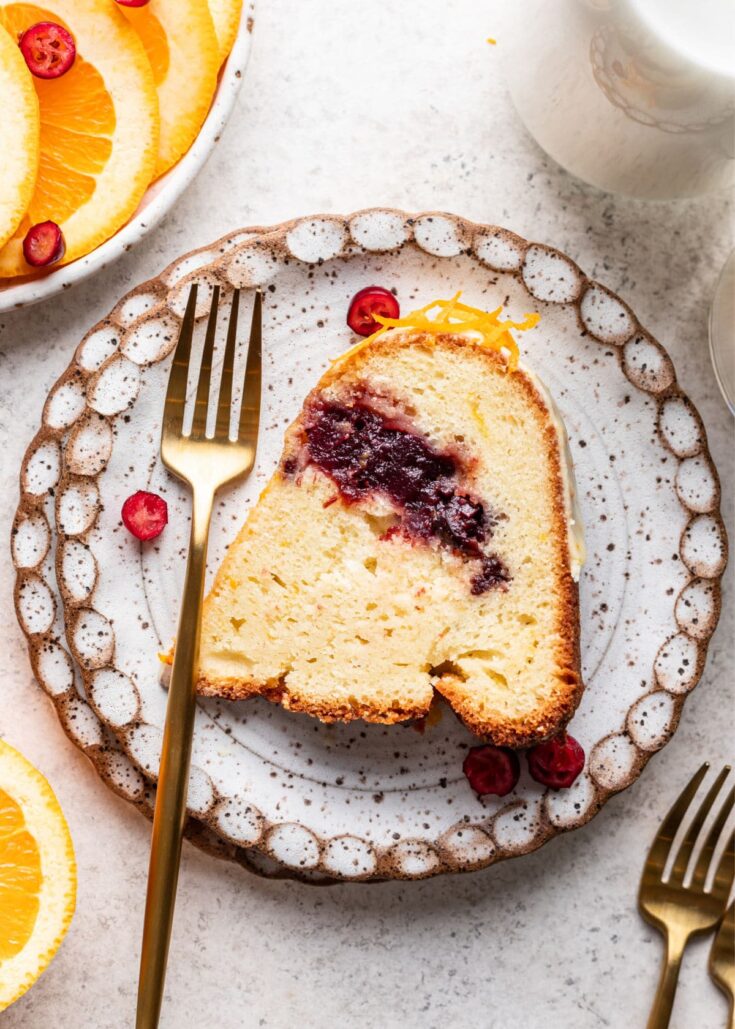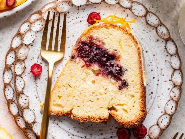 Cranberry Orange Pound Cake is a moist, orange-vanilla pound cake filled with tart cranberries throughout. Topped with a sweet orange glaze, it’s the ultimate Thanksgiving dessert that combines the perfect balance of citrus and berry flavours!