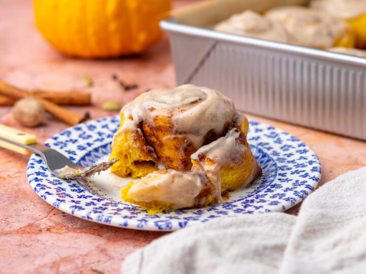 Made with rich brioche dough, real pumpkin puree, and chai cream cheese frosting, these Sourdough Pumpkin Cinnamon Rolls are soft, fluffy, and have a delightful pull-apart texture. Perfect for a cozy fall morning or holiday breakfast!