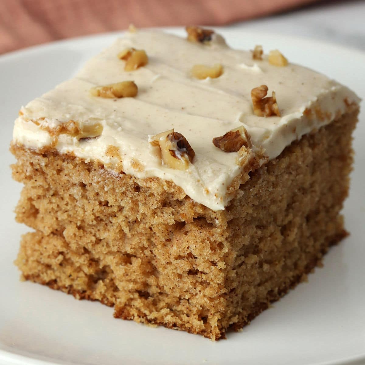 This moist, homemade applesauce spice cake is infused with cozy fall spices and topped with a decadent brown butter cream cheese frosting. It’s the perfect dessert to enjoy during the holidays!