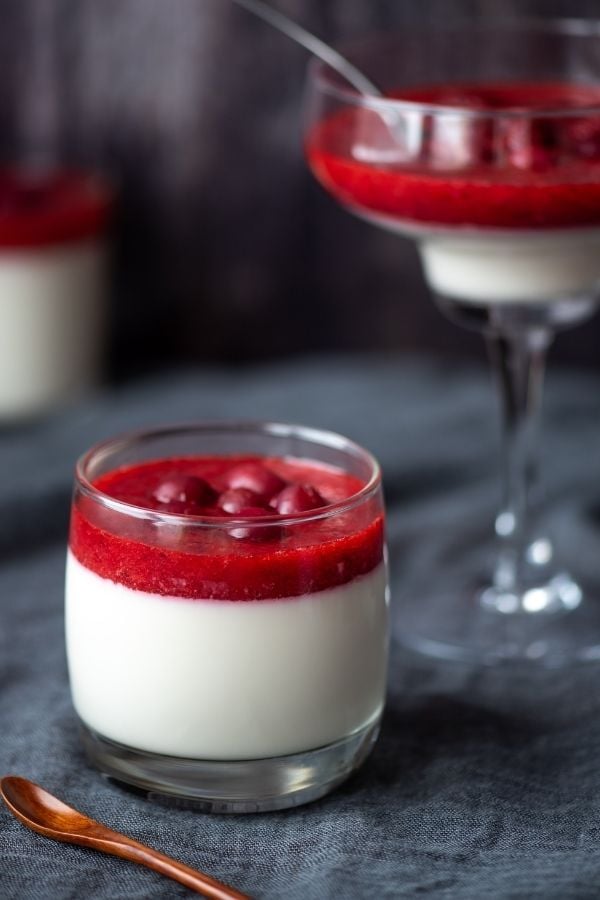 This Goat Cheese Panna Cotta with Cranberry, Rosemary & Port Glaze is the perfect holiday dessert for Thanksgiving or Christmas. It’s easy to make ahead and ideal for anyone who can’t decide between a cheese platter and dessert. Creamy, tangy, and beautifully festive!
