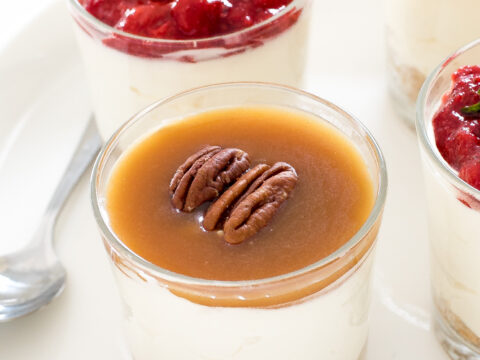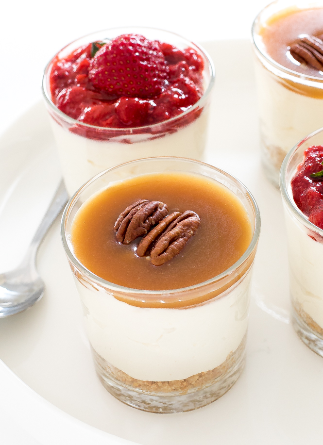 Individual No-Bake Cheesecake Jars will quickly become your go-to summer dessert! This super-easy recipe takes less than 15 minutes to prepare with just 6 pantry staple ingredients. Perfect for serving 2 or 4 guests, you can top them off with your favourite fruit, nuts, or chocolate for a customizable treat!