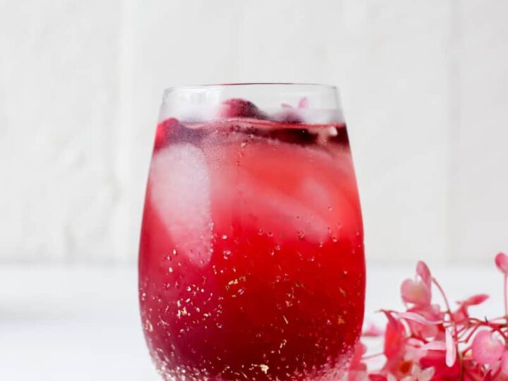 This hibiscus tea cosmopolitan is a unique take on the classic cosmopolitan cocktail with the same red appearance but with a more floral than fruity flavour flavour.