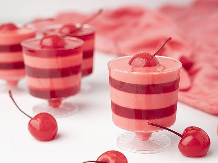 Cherries and Cream Layered Jello Shots