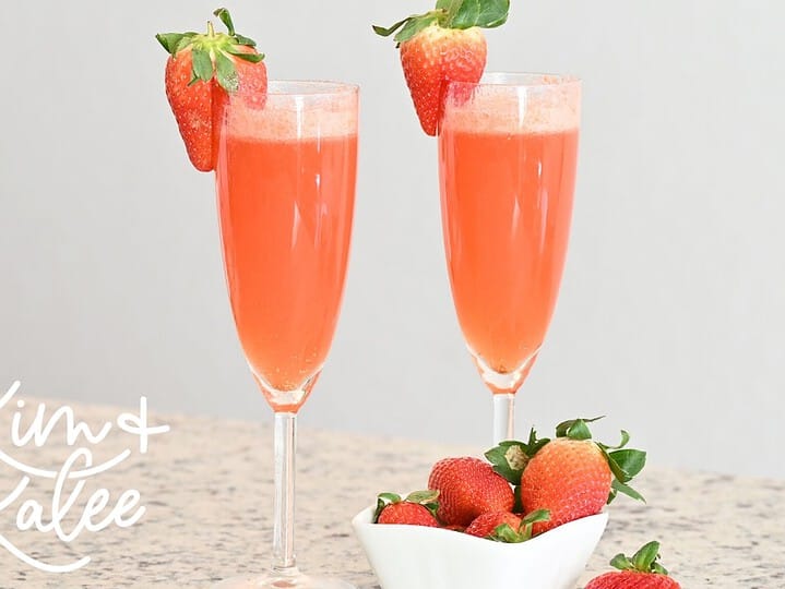 These strawberry mimosas are perfect for your Valentine's or Galentine's Day Brunch! They are made without orange juice.