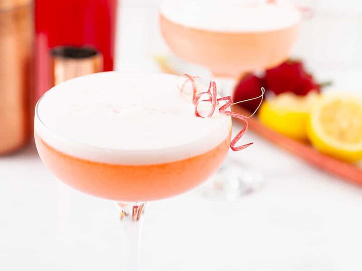 This Clover Club cocktail is a classic pre-prohibition era sour cocktail with raspberry syrup and creamy egg white foam.