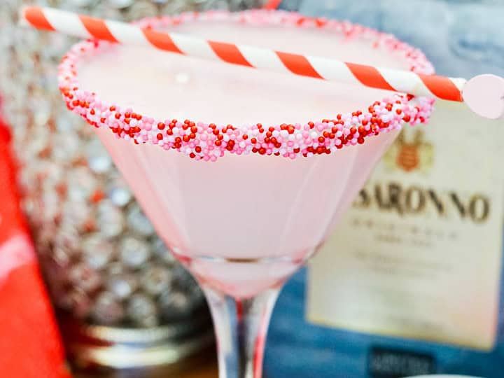 If you've got a sweet tooth, you will love this sweetie martini with two flavoured vodkas, Amaretto, Grenadine and some sweet frosting and sprinkles for added sweetness!